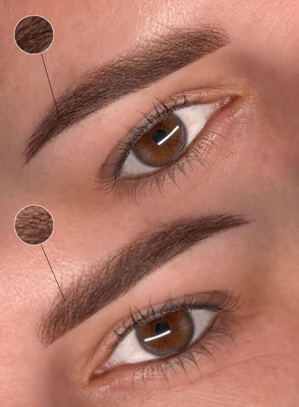 Bei dieser Technik werden feinste, haarähnliche Strukturen pigmentiert, die echten Augenbrauen täuschend ähnlich sehen. Das Ergebnis wirkt weich, luftig und besonders natürlich.